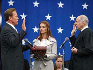 ... that Arnold was elected Governor of California in 2004 in a special election. He was re-elected in 2008 with a substantial majority. He is a staunch Republican and very active in conservative politics. You can learn more about the "People's Governor" at the The Official Website for the State of California.
