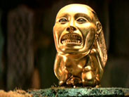 "In the opening scenes of Raiders of the Lost Ark (1981), Indiana Jones is hot on the trail of an extremely valuable golden idol created by an unidentified ancient South American culture. The goddess's image, which Jones deftly snatches from an altar (setting off a series of booby traps that culminate with an enormous boulder nearly crushing our hero), is of a woman in the act of giving birth. The golden figure was modeled on a purportedly Aztec greenstone carving called Tlazolteotl, considered to be a masterpiece by the Dumbarton Oaks Museum in Washington, D.C.