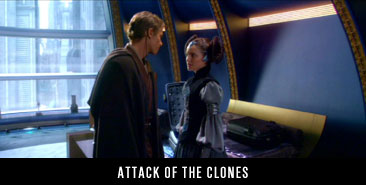 It was a forbidden May-December romance. But love will not be denied, even in a galaxy far far away. We track the evolution of Anakin Skywalker and Padme Amidala's relationship in this QuickClip filled feature. Are you an angel? My caring for you will remain. Don't look at me like that. I thought about her every day and she's forgotten about me completely. First Kiss. I thought we decided not to fall in love. A secret wedding. I'm pregnant. You die in childbirth. Wait for me. You're breaking my heart. She dies thinking of Anakin. | Star Wars Friendships & Romances Feature Page | Tribute to Star Wars Home | Site Map | DH Home Star Wars © 1977-2005 20th Century Fox. All rights reserved. Unauthorized use of this material is strictly prohibited. © 2001-2010 Destination Hollywood. All rights reserved.